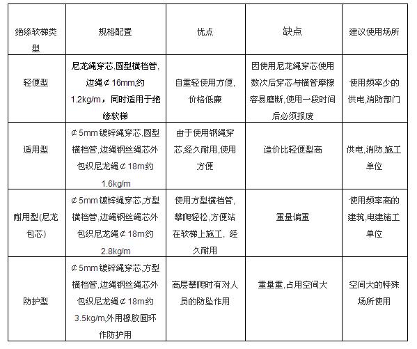 絕緣軟梯各種規格比較技術(shù)闡述: